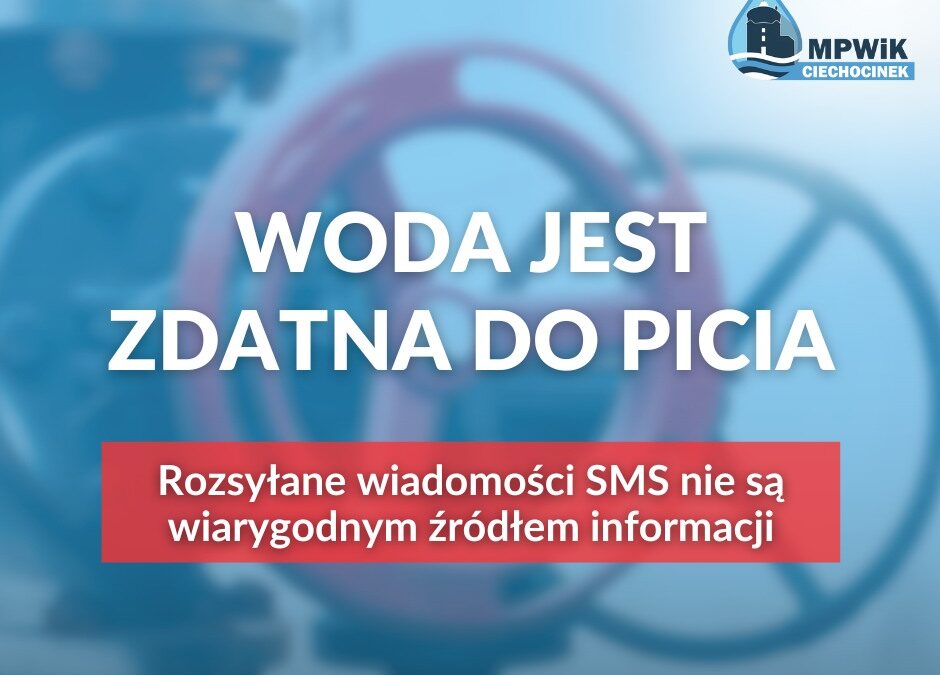 • Rozsyłane wiadomości SMS nie są wiarygodnym źródłem informacji. Stawiajcie na wiarygodne oficjalne kanały takie jak strona https://mpwik.ciechocinek.pl i profil MPWiK Ciechocinek.